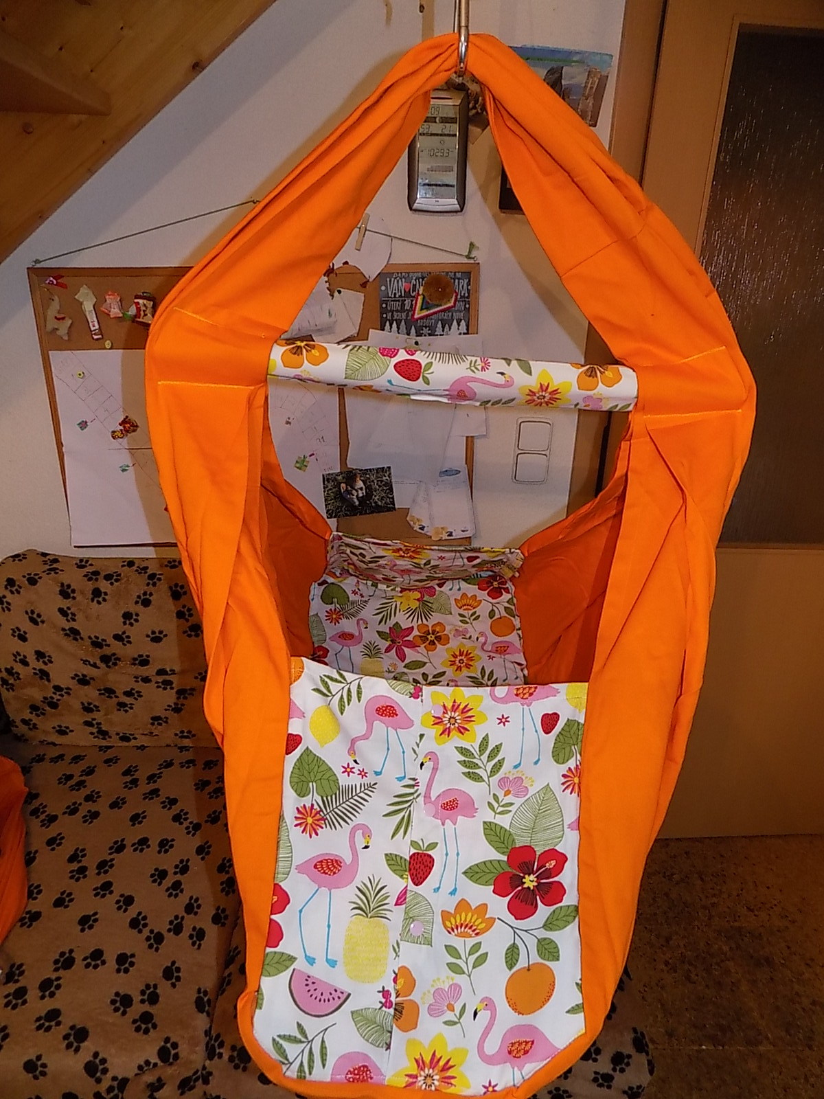 Hačka Tiki-Mechulka pro batolata - uzavíratelná; oranžová + plameňáci